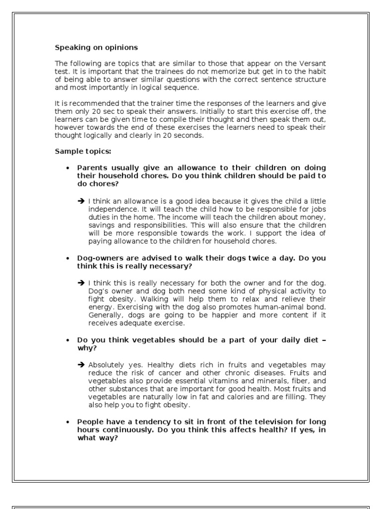 Versant English Test Sample Question And Answer Opinion Question Part E Mobile Phones Vegetables