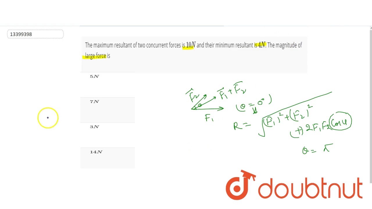 The Maximum Resultant Of Two Concurrent Forces Is 10n And Their Minimum Resultant Is Youtube